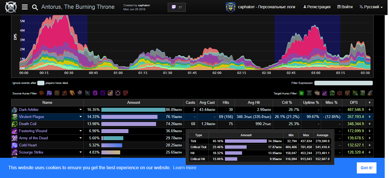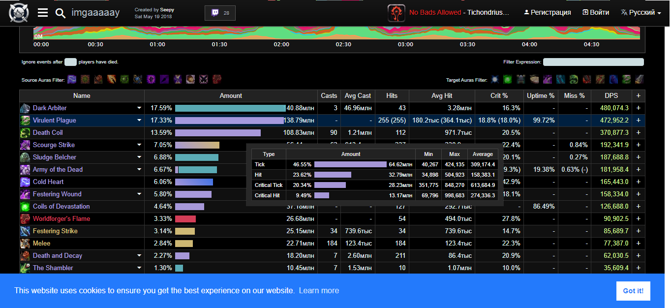 Прошу прощения не тот арт в логах включил щас вкючил 101 арт там дота бьет по 1,2 у нас до обновы последней была 1,1 вот логи https://ru.warcraftlogs.com/reports/Hh1CzWjNQ7ft3MLa#fight=1&type=damage-done&source=27 |