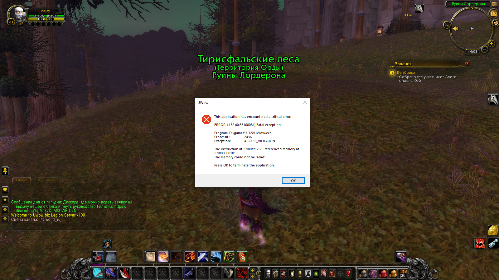 Ничего, вчера вышел из игры ,сегодня зашел , пробыл в сети минут 5 , вылезла ошибка |