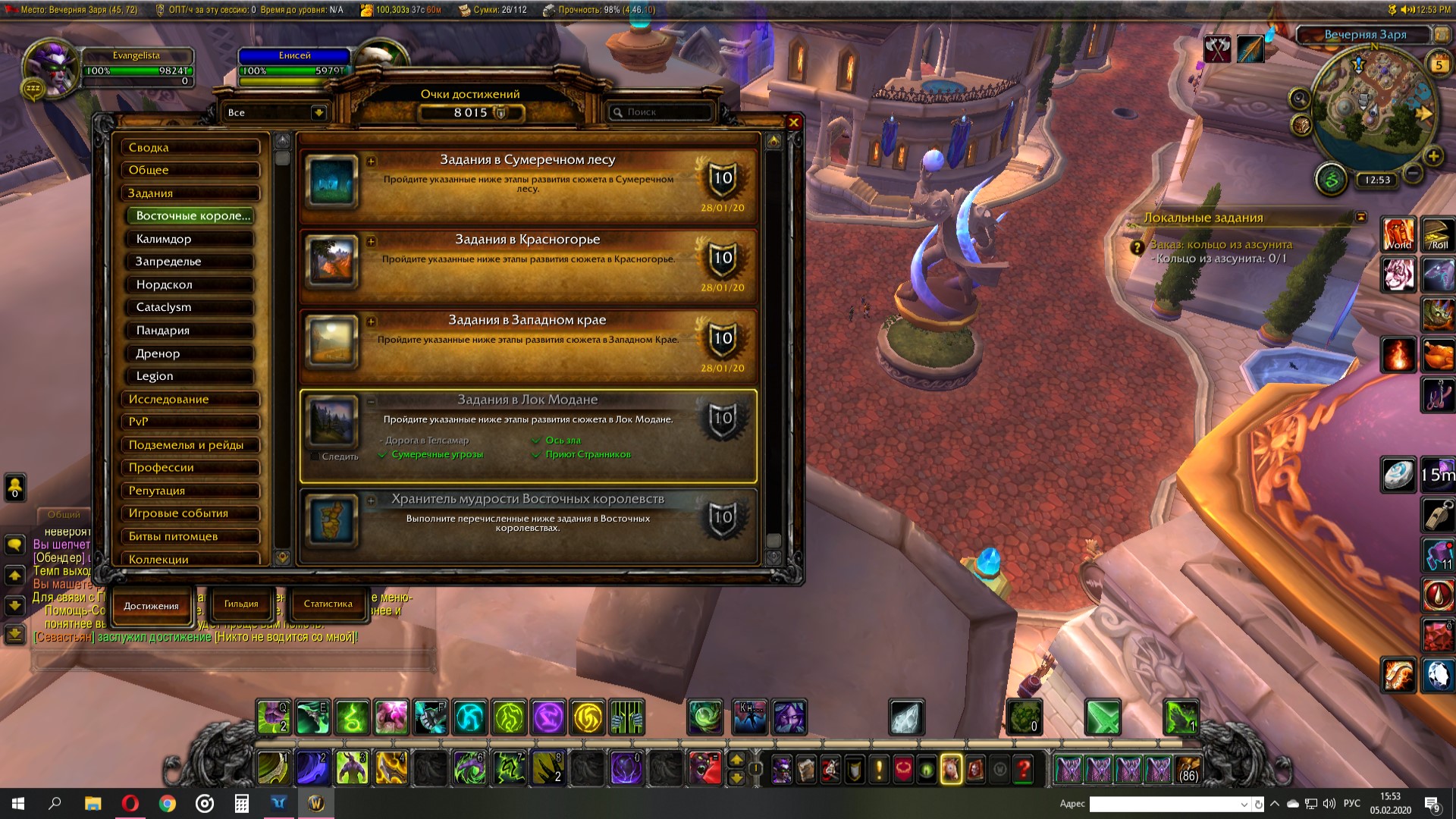 | Description | Добрый день! Столкнулся с такой проблемой, делая ачив https://ru.wowhead.com/achievement=4899 мне не засчитало " Дорога в Телсамар". Скачал аддон Quest Completist, аддон показывает, что я не сделал много квестов в данной локации, но я их сто процентов сделал. Скриншоты прилогаю. Заранее спасибо! | ||||