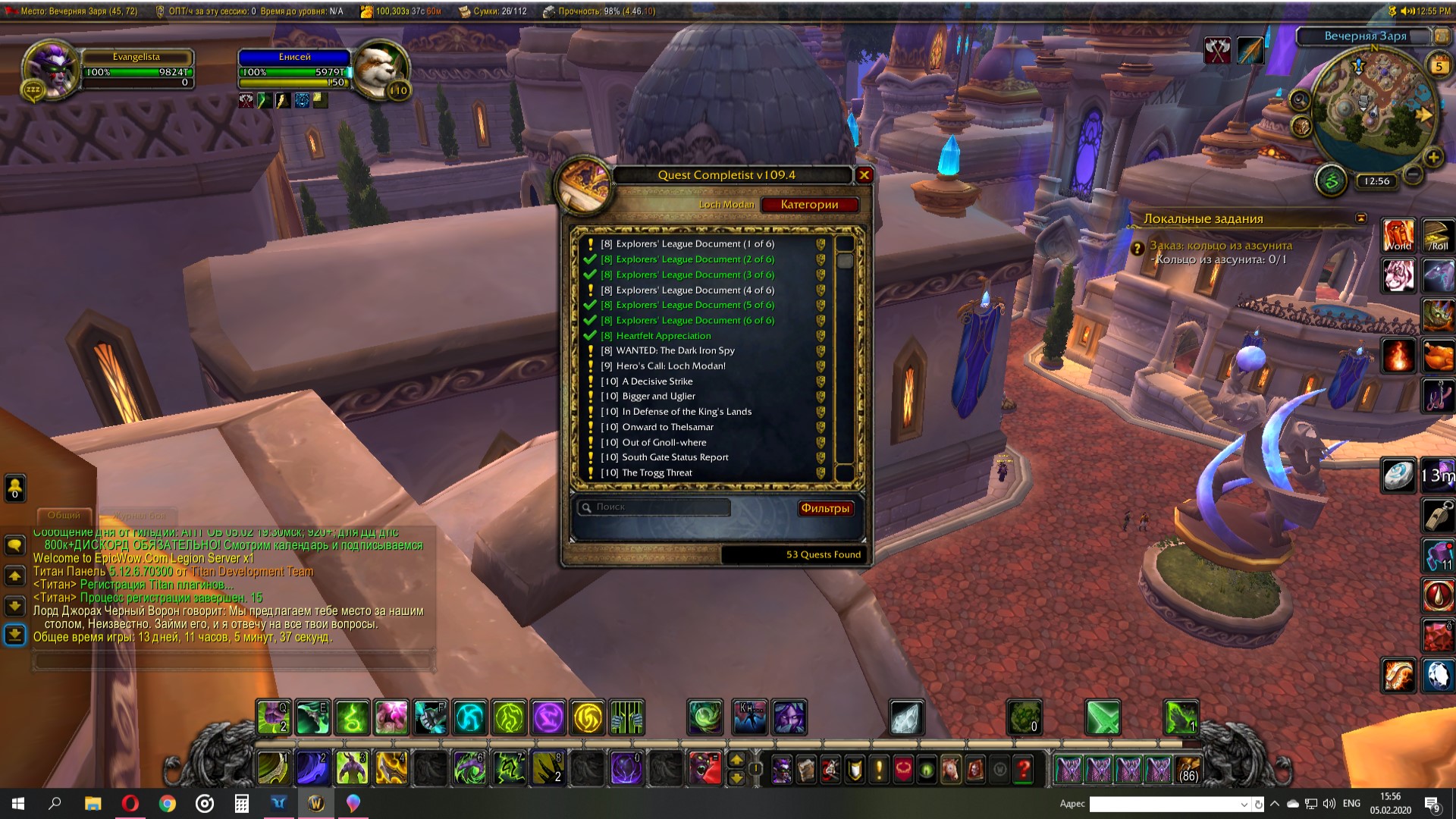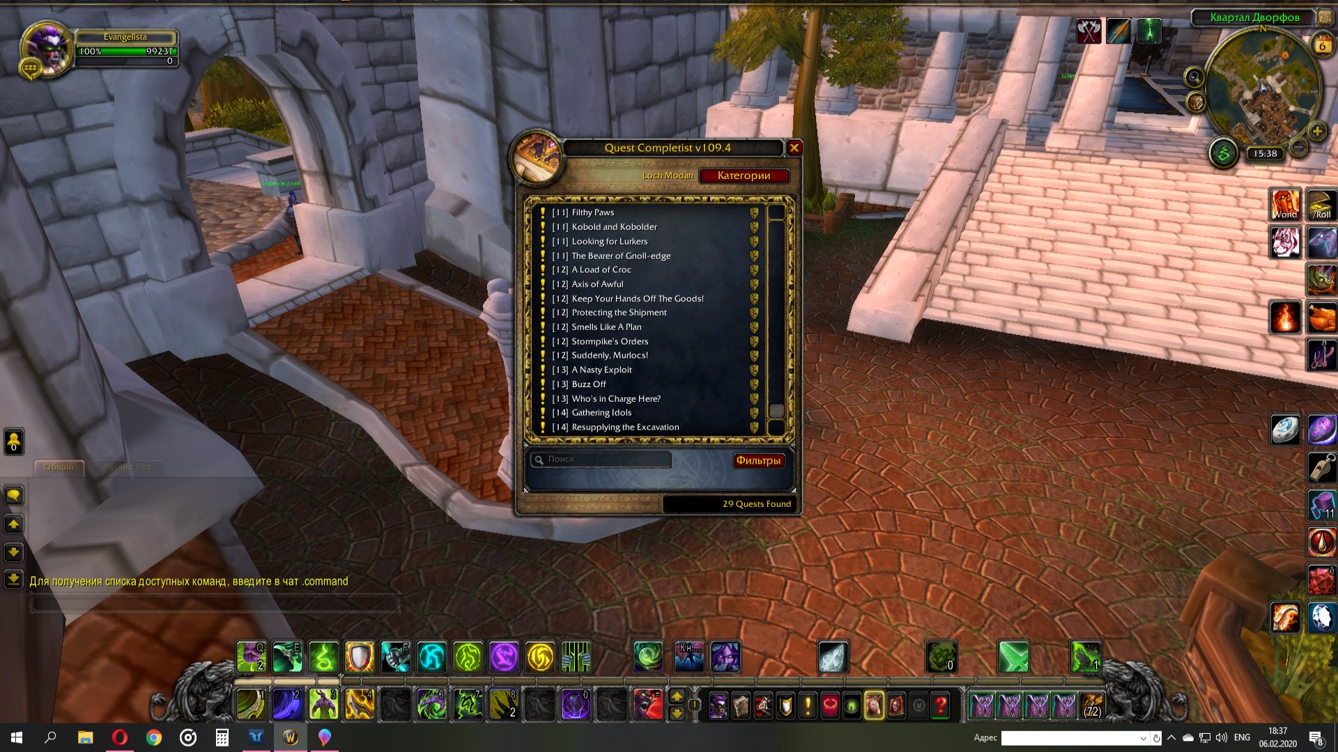 Я пролетелся по всем квестам в локации которые указаны на карте как невыполненые, квесты никто не дает. Так же сделал все квесты в Дун мороге, начиная со стартовой локации дворфов. Пролетел весть Стальгорн, там нет квестов в Лок Модан. Квест https://ru.wowhead.com/quest=28567 я делал, только брал у охранника в центре Стальгорна. Скрины квест гивера по паукам и карты Лок Модана в приложении. По карте видно, что даже внутри игровой квестхелпер не показывает не выполненных квестов. |