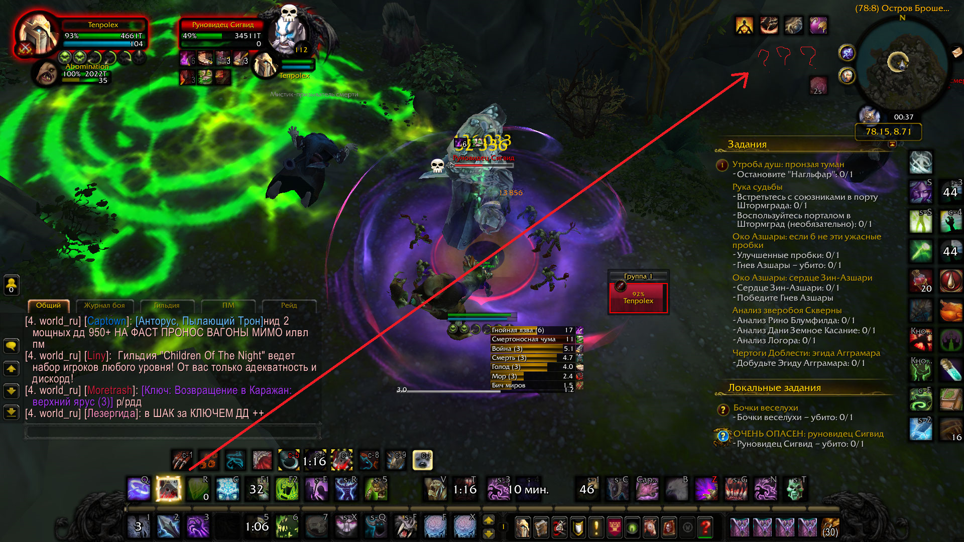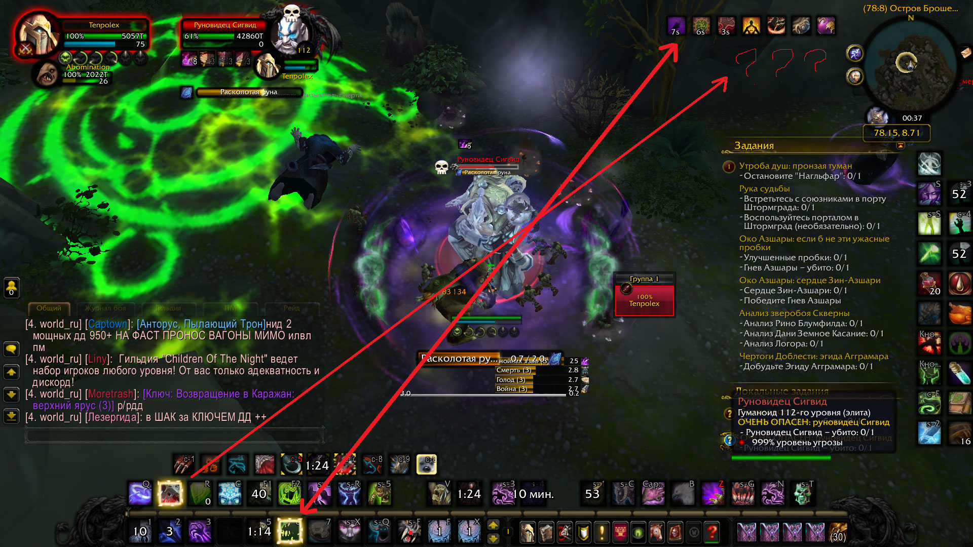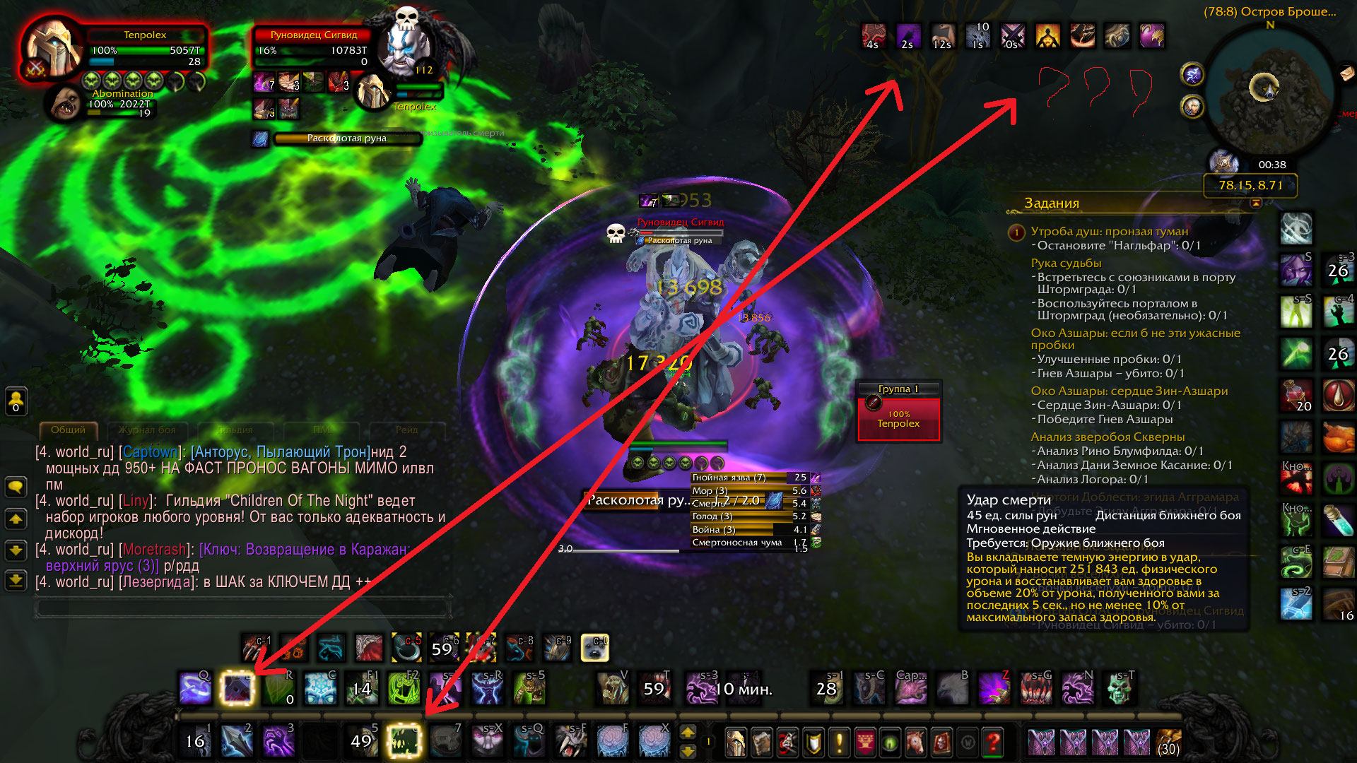 2) На втором скрине у меня опять же горит подсветка https://ru.wowhead.com/spell=49998/ но в ПРОКАХ ВООБЩЕ НИЧЕГО НЕТ.