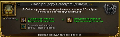 репутация в ги уважение минимум (маловероятно) минимальное количество членов ги в пати не достигнуто - значка, что можно зарабатывать ги достижения можно - нет. или элементарно - баг с ачивкой в этом инсте. поскольку это рейд - по идее требуется минимум 8 тел из ги для ачивки. Проверьте первые два пункта а с третьим надеюсь ответит тестер. |