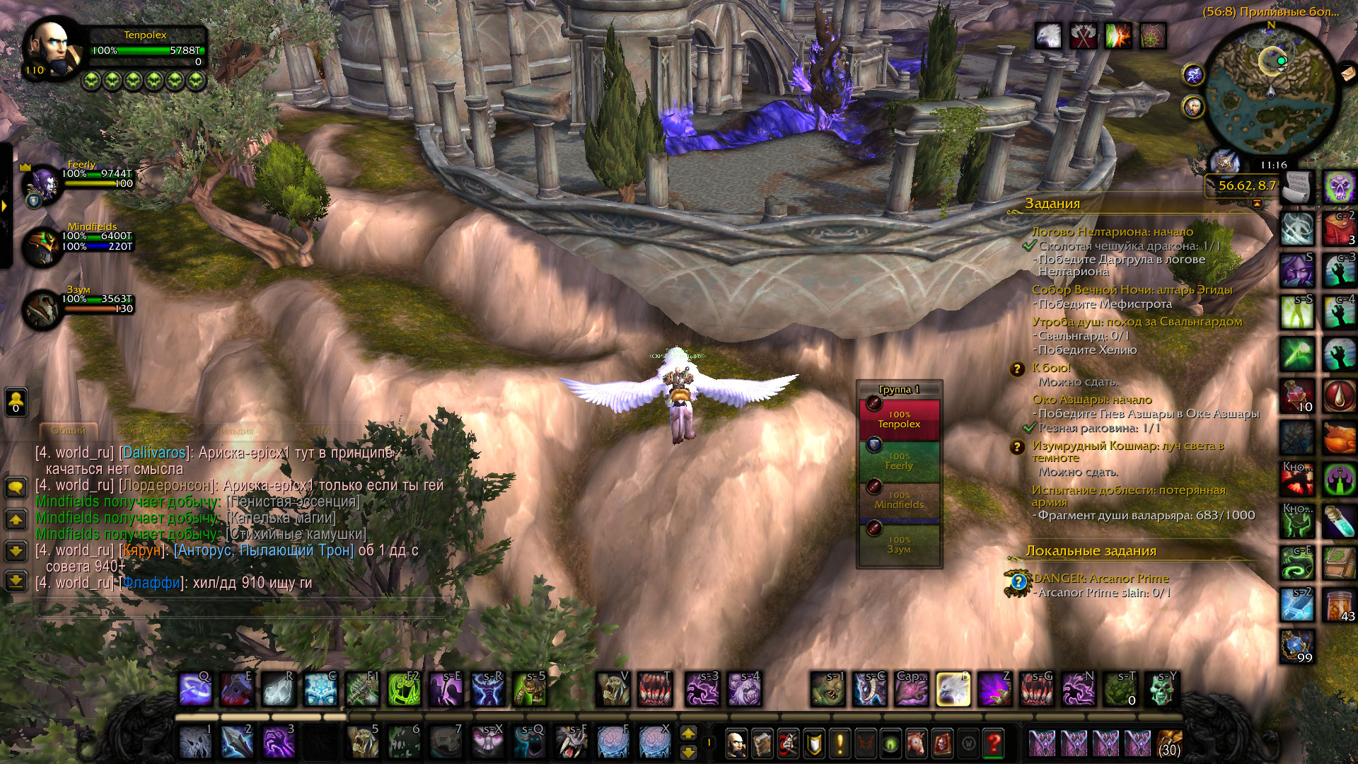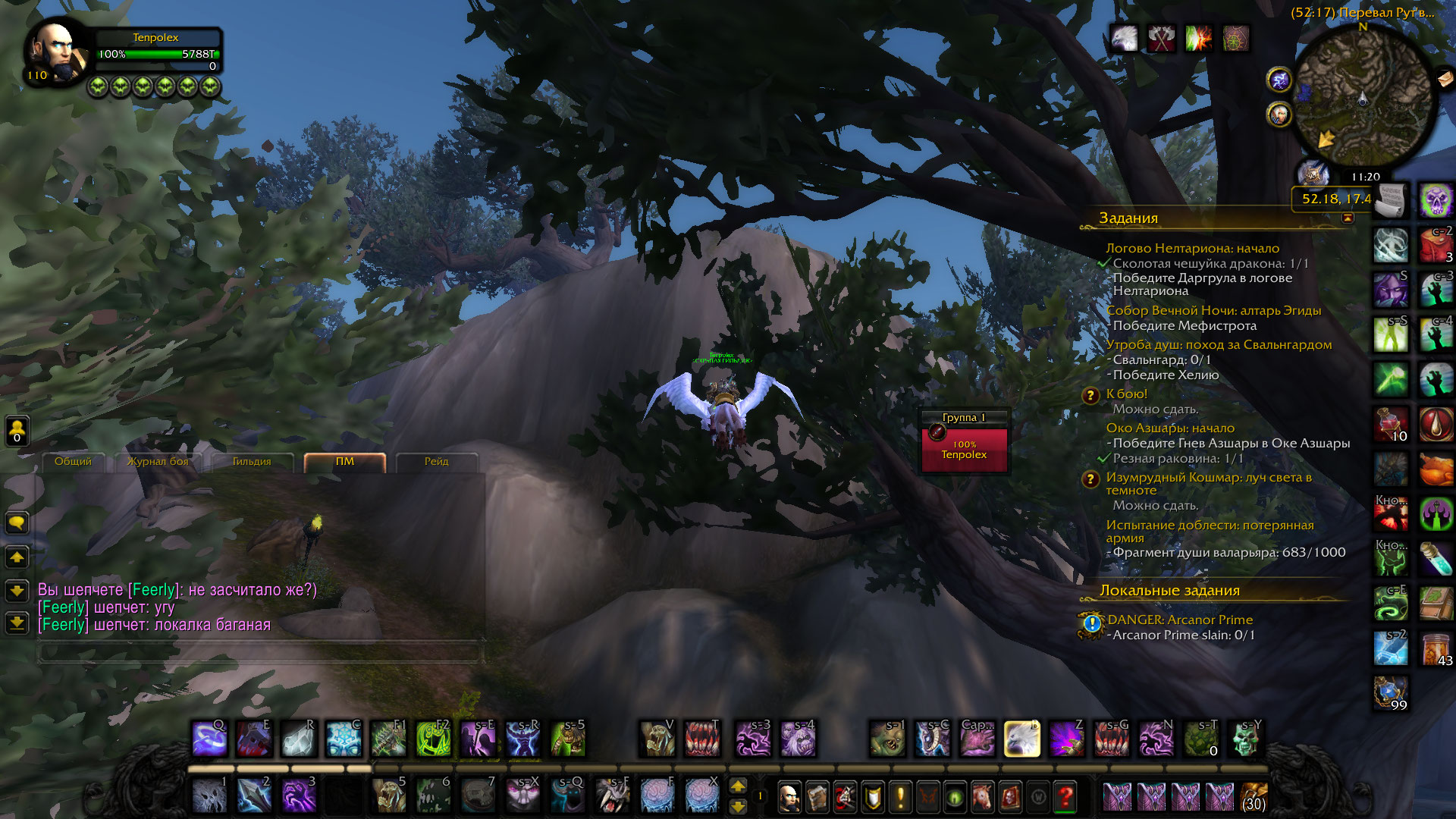 | Description | Начну с того, что данное локальное задание полностью не локализировано. Оно у нас ищется как: https://www.wowhead.com/quest=43091/ а должно: https://ru.wowhead.com/quest=43091/ Область выполнения локалки появляется в абсолютно некорректном месте. Приложу скрин, именно в том месте где я на птичке вишу в воздухе - там и появляется область. Если прилететь на область спавна NPC https://ru.wowhead.com/npc=109641/ - область локалки сразу же пропадет. По итогу: Локальное задание выполнить, никаким образом невозможно. | ||||