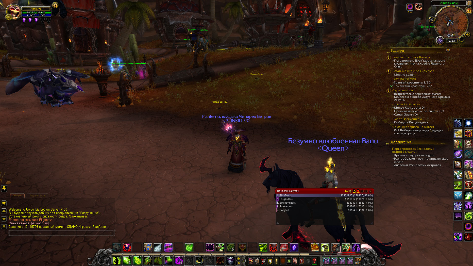 Я играю за чернокнижника класс Разрушение.Все квесты оплота я сделал,мой артефакт прокачан до 73 уровня.