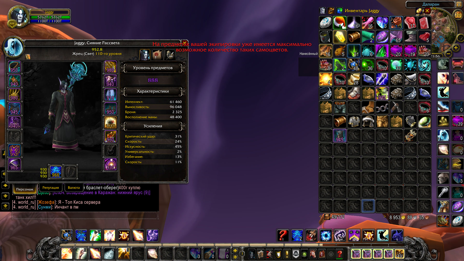 Здравствуйте, сколько у вас камней на в вещах 200 интелекта? Можно только 1 вставлять в шмот. |