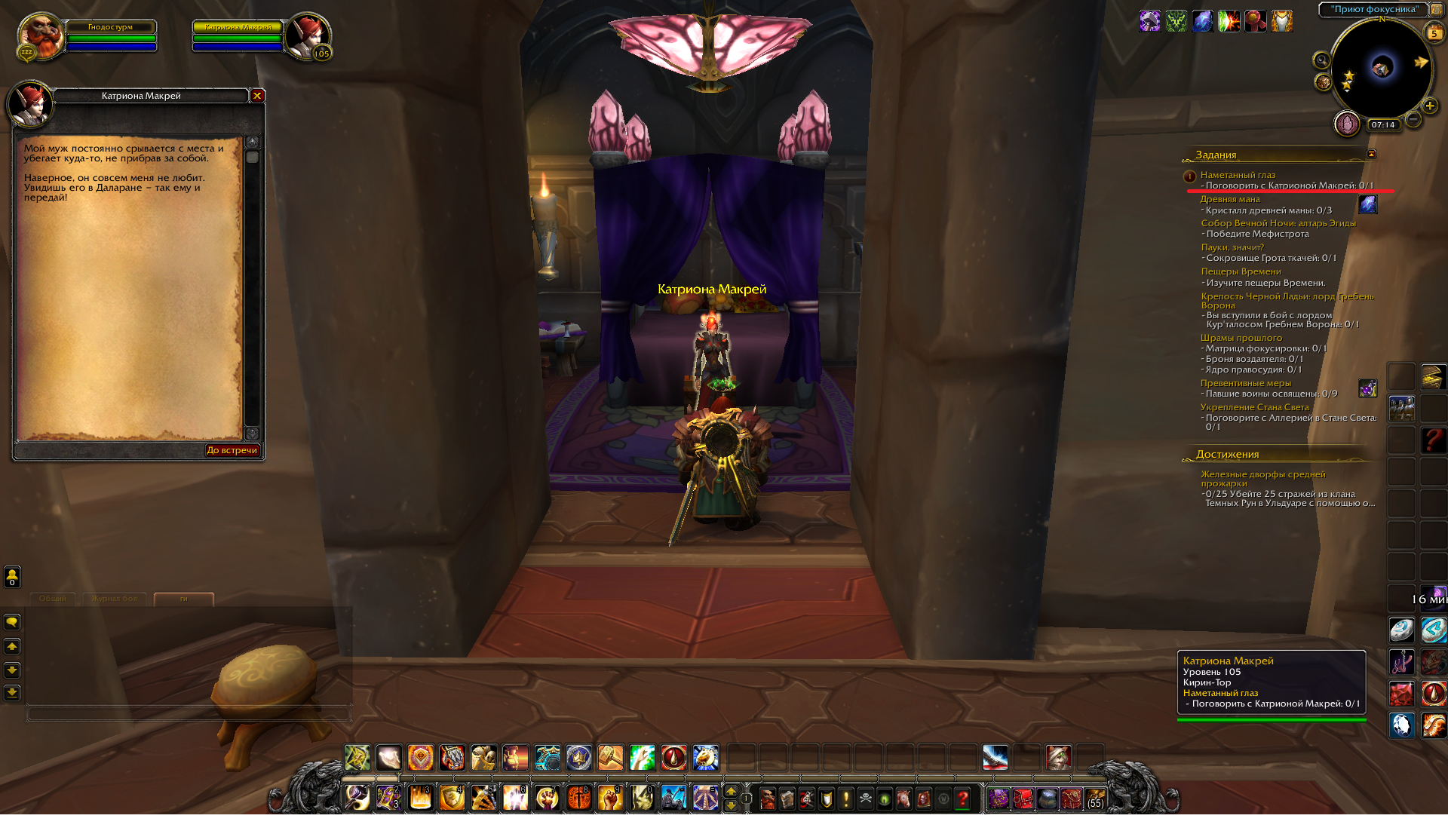 DescriptionНик Hilner. Цепочка заданий для ювелирного дела легиона. Задание "Наметанный глаз". По заданию нужно поговорить с Катрионой Макрей, однако у нее нет кнопки диалога. Это можно увидеть на скрине. Пробовал исправлять в кабинете и перелогиниваться, не помогает