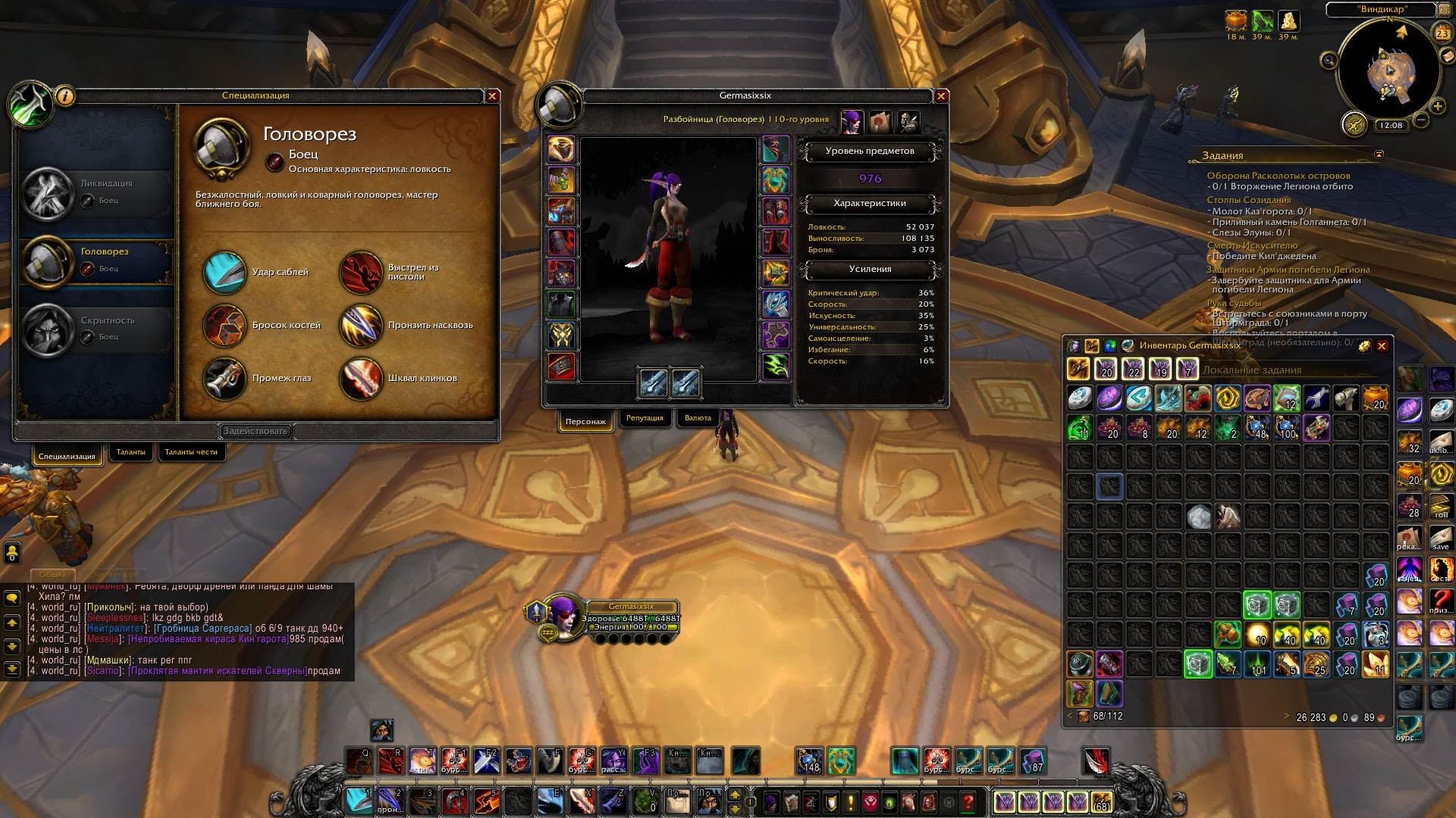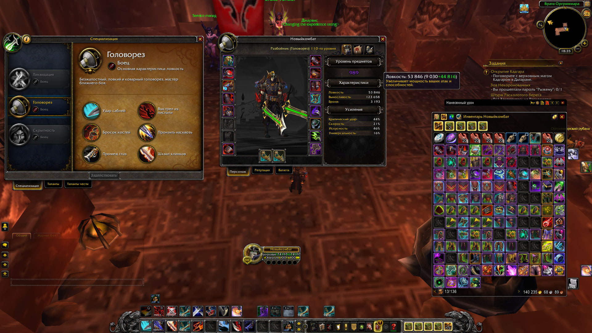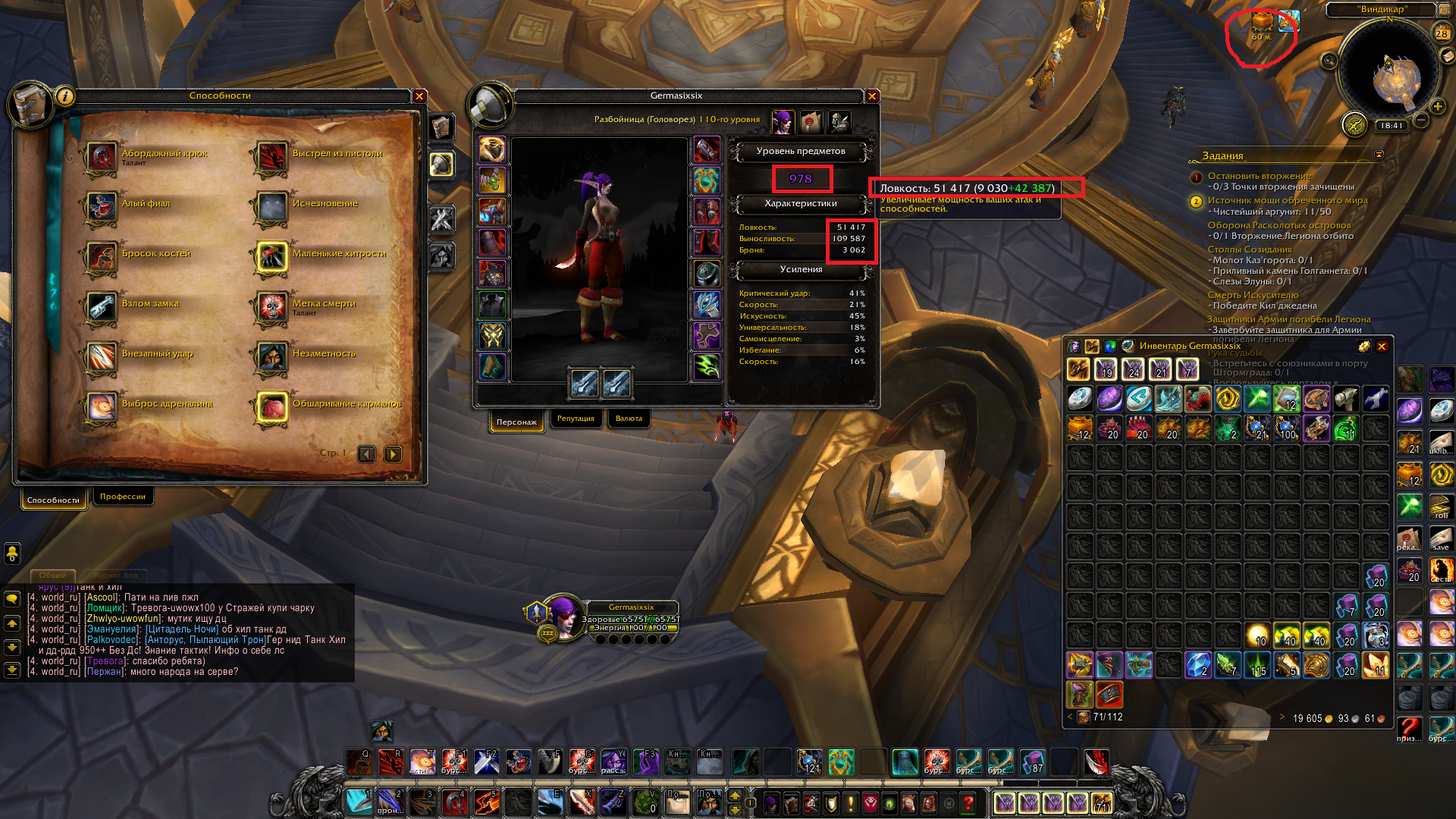 Да и вообще, ловкости у разбойника (помимо экипировки) меньше чем нужно дается, На первом скрине показатели ловкости такие какие он должны были быть при 977 итемлевеле (с учетом бафов разбойника), на 2 такие какие они на персонаже 989 итемлевела с таким же набором экипировки, а количество ловкости даже до уровня 977 еле набирается ( это с учетом того, если бы с 2 руки артефакта давало бы ловкость), а на 3 скрине показатель ловкости с разбойника 978 итемлевела. С учетом бафов разбойника которые дают ему 2124 ловкости, недостаток ловкости около 2 тысяч, 4 скрин персонаж такого же илевла, сделанный на тесте с той эе экипировкой. |