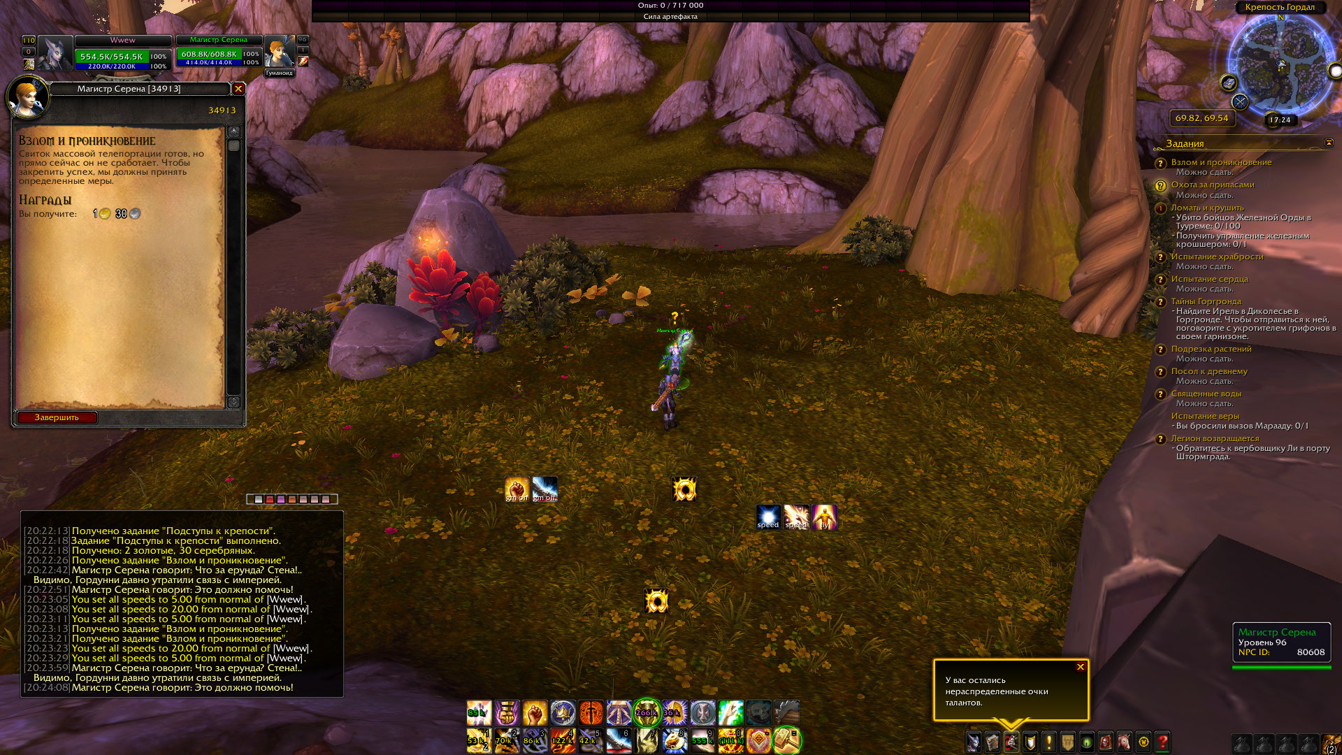 Хм задание не отменял , меня кинуло в крепость по телепорту - только подошел к указанному нпс - сразу загорелось посреди экрана пункт о выполнении задания - поговорить с селеной , после чего все корректно сдалось. такое впечатление что в прошлый раз скрипт на приближение к нпс не сработал, а может его лучше навесить на открытие нпс ? помойму так стабильнее будет. |