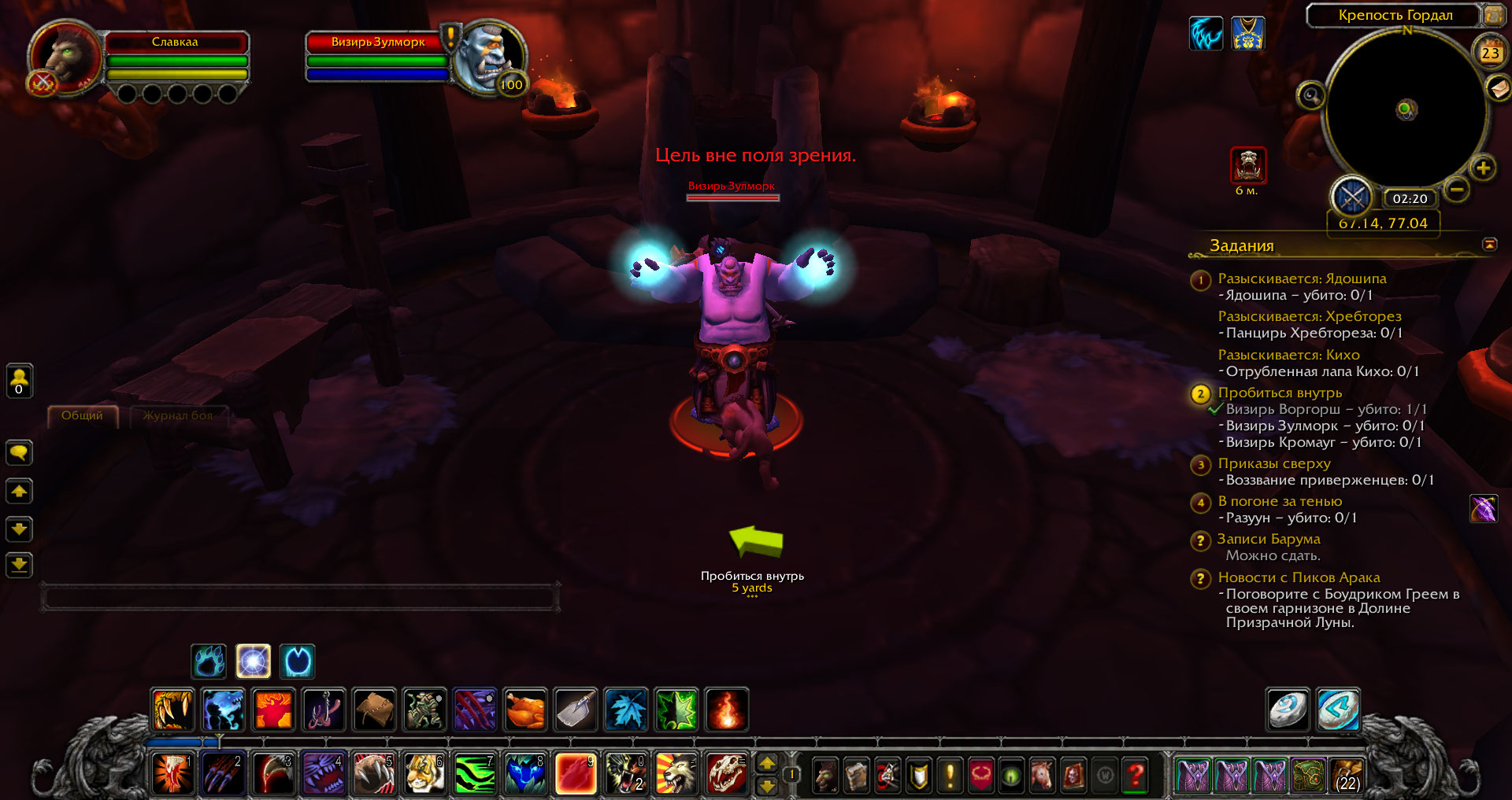 Сейчас было весело - пришел в комнату - ровно подошел к мобу спереди , начинаю бить - опять пишет Цель вне поля зрения,моб также меня не бьет . Начал обходить со стороны .. немного в право ушел - моб неожиданно меня увидел и начал бить , за что пришлось ему ответить тем же.. и закончить квест. было глупое предположение - может изза того что я друид кошка - высота перса маленькая - пока писал моб появился - я пытался бить его прямо в лоб лунным огнем, на что опять получил Цель вне поля зрения, начал уходить в право и опять он среагировал на меня только тут. Спасибо за потраченное время =) |
