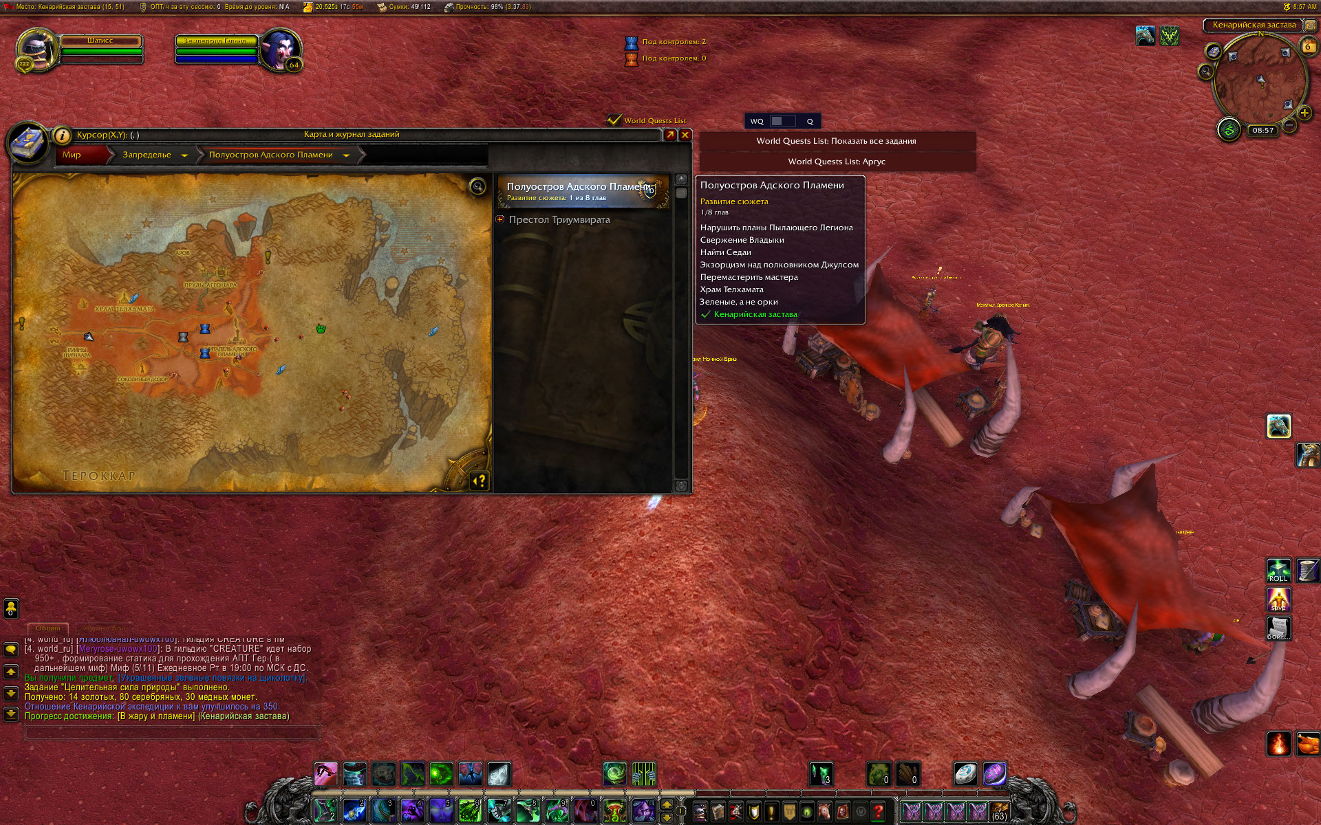 Здравствуйте, скачайте аддон quest completist и скиньте мне сриншот квестов полуострова Адского пламени |