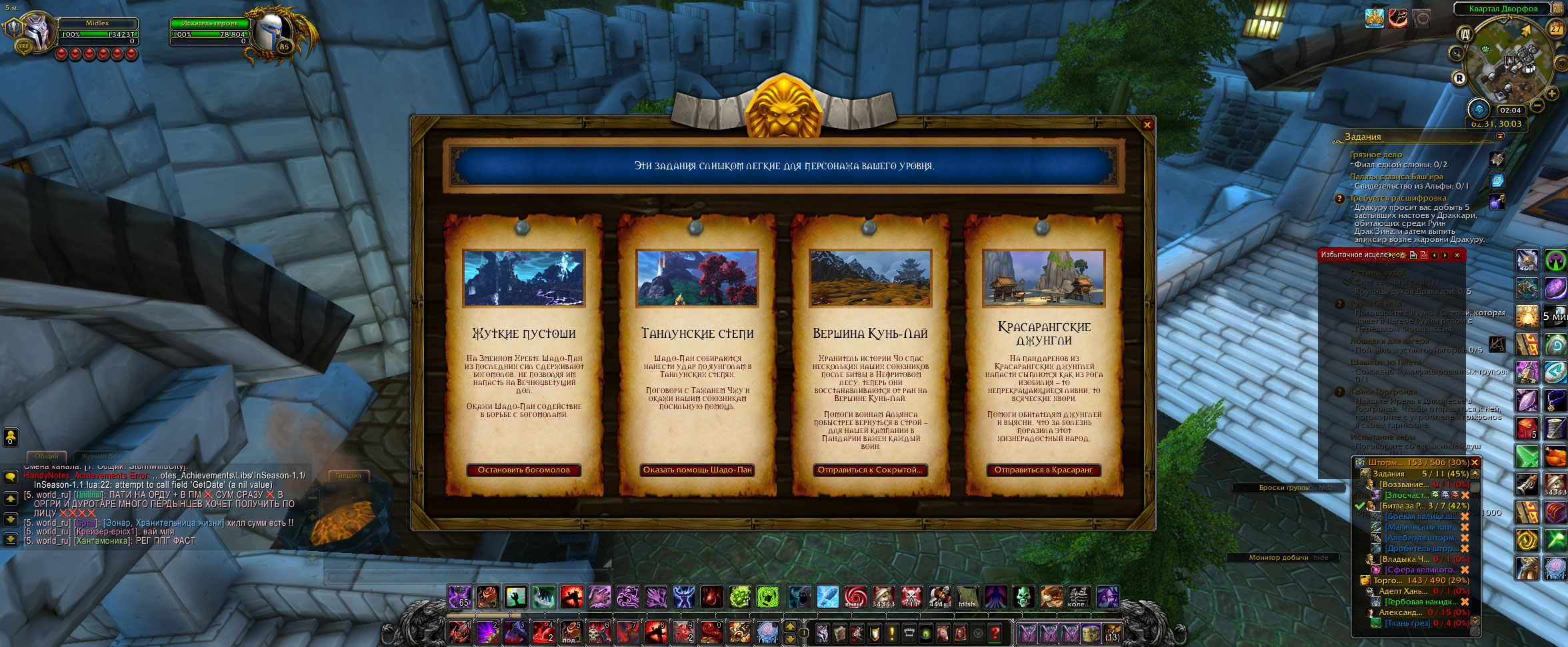 Здравствуйте, скачайте аддон quest completist и скиньте мне сриншот квестов в острогорье |