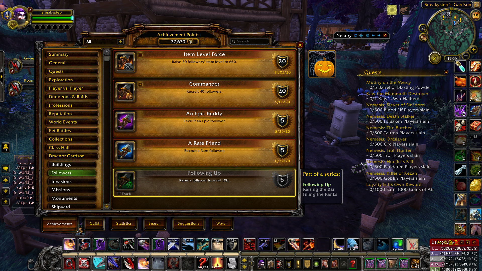 https://www.wowhead.com/achievement=9110/following-up still doesn't work. Level 93 follower https://www.wowhead.com/follower=211.1/glirin-penny-clobberbottom leveled at 100 doesn't grant the achievement. |