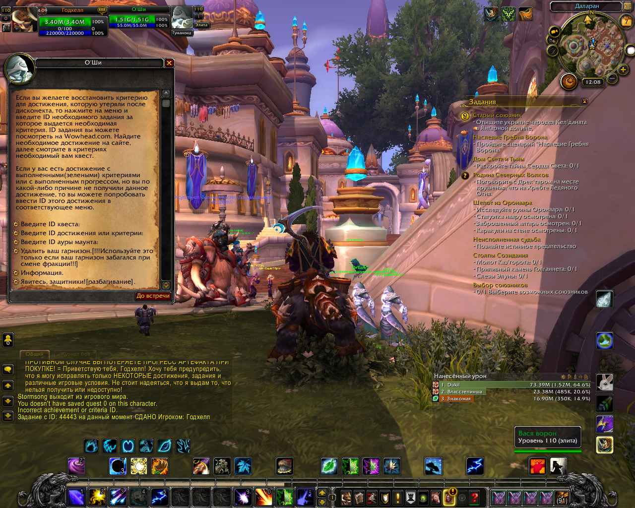 | Description | Добрый день не дает квест на 4й артефакт друида.. я почитал такая тема уже есть http://tracker.legionbugs.com/view.php?id=7258 НИП Ренсар Большое Копыто <Верховный друид рощи> начинает квесты на все 4 артефакта друида. Ренсар Большое Копыто Это квесты, которые идут по порядку от 1 к 4: 1. Легендарное оружие Легендарное оружие 2. Еще одно древнее оружие Еще одно древнее оружие 3. Еще больше древнего оружия Еще больше древнего оружия 4. Оружие Древних Оружие Древних Я получил 3 артефакта из 4ех (по порядку: Коса Элуны, Г'ханир, Когти Урсока), пропустив каким-то образом квест "Еще одно древнее оружие". Его просто-напросто не было в цепочке. А выполнив последний квест, у НИПа нет больше других заданий на артефакты. | ||||