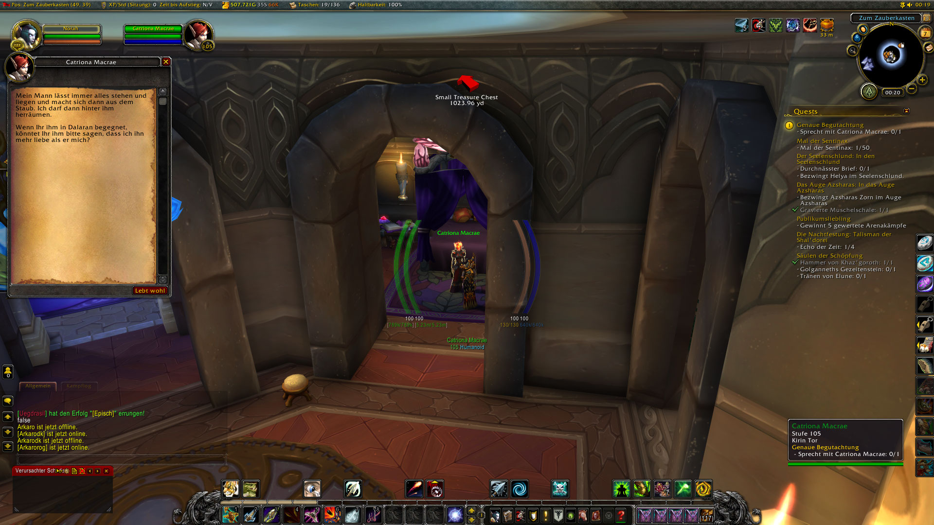 | Description | Link to the quest: https://www.wowhead.com/quest=40530/an-eye-for-detail Quest: Talk to Catriona Macrae You can talk to this npc but nothing happend Sub Quest: https://www.wowhead.com/npc=100579/7-0-professions-jewelcrafting-an-eye-for-detail-kill-credit-01-scs | ||||