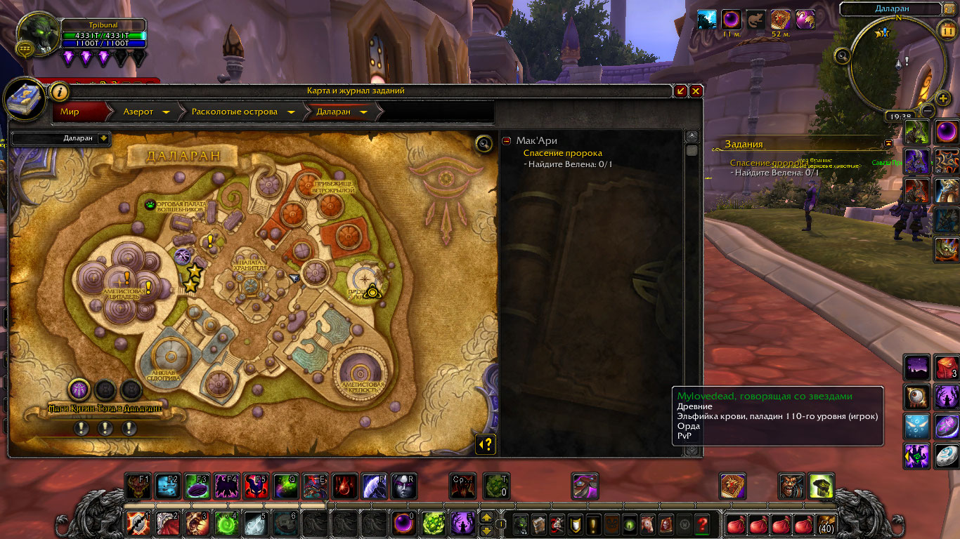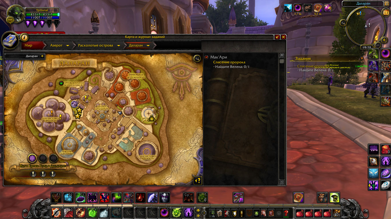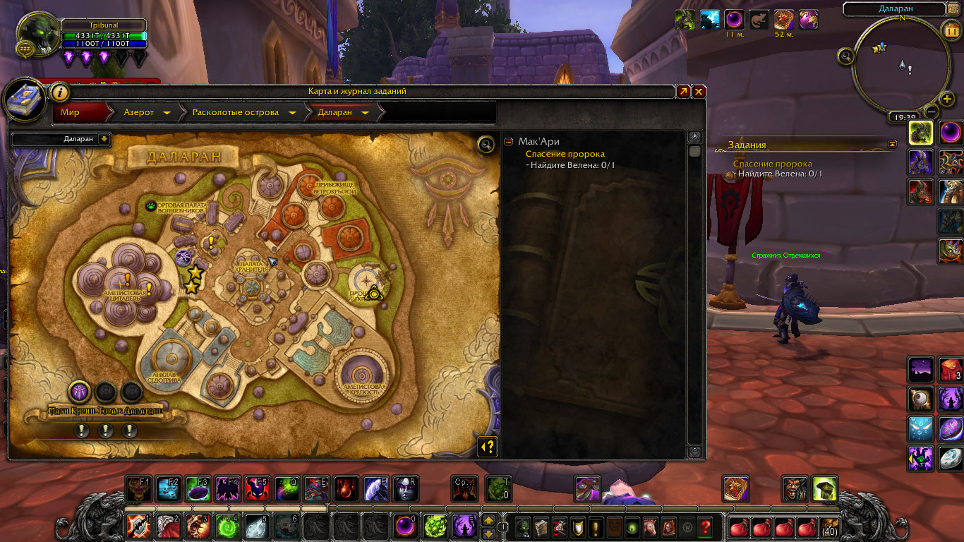 | Description | Арт получен,всё в порядке, проблема в отсутствии кв по прокачке оплота и тд, вообще 0 кв. на скриншотах будет видно что в даларане,в оплоте,у персонажа и у нпс нету квестов | ||||
