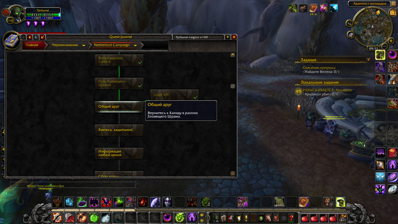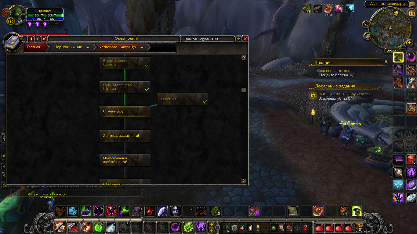 Скачайте адддоны BtWQuests и BtWQuestsLegion и узнаете что сделано Или .q s id проверяете все квесты оплота Что бы понять что и почему у вас забаганно нужно найти квест на котором вы остановились |
