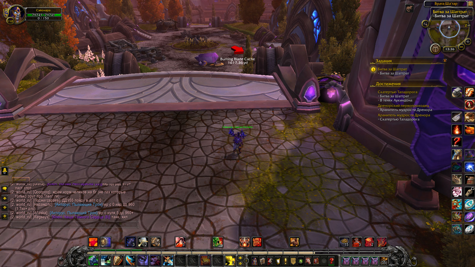 | Description | Последовательность выполнения достижения Скатертью Таладорога-Битва за Шаттрат не работает.На скрине видно что персонаж стоит в круге активации начала сценария но не происходит НИЧЕГО от слова СОВСЕМ.Пробовалось и релогиниться и выходить из игры отменяя квест с последующим заходом через 10-15 мин чтобы обновилась ДАТА,пробовалось также пробегать по маршруту движения сценария в надежде что активируеться 2-3 или 4 я фазы сценария(занятие бесполезное ).Может нужно позвать ШАМАНА с бубном ??? Я в полной растерянности.ВЫРУЧАЙТЕ | ||||