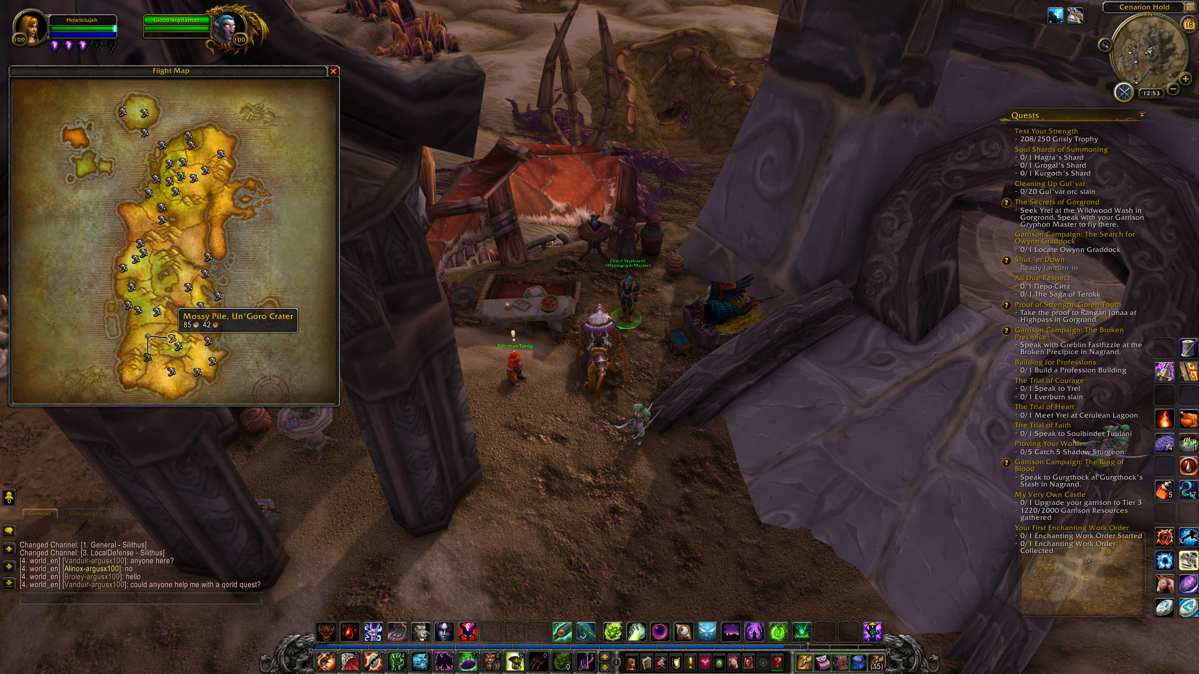 | Description | Flightpoint in Cenarion Hold shows as "Oasis of Vir'sar" on flight map. See SS for flightpath from Cenarion Hold (where I was) to Mossy Pile/Ungoro. If you indicate you wish to fly from Cenarion Hold (where you physically are) to Feathermoon/Feralas, your path goes from Vir'sar to Feathermoon via Cernarion Hold. | ||||