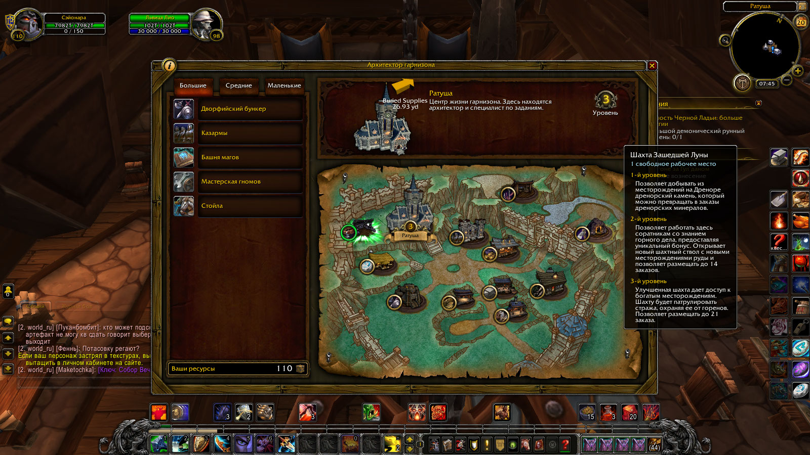 | Description | И так ))0 Построив в гарнизоне шахту 3 уровня ну точнее улучшив ее со 2го на 3й с ужасом понял что БАГНУЛИСЬ текстуры шахты теперь при заходе в шахту мне показывает что она якобы ПЕРВОГО уровня на скрине видно что прорисовываються текстуры шахты 3его но попасть туда нет возможности проход перекрыт текстурой СТЕНЫ от шахты первого.Плюс перестала ресаться руда и вагонетки в самой шахте.Дополнительно делаю достижение на Таверну 3го уровня для этого нужно выполнить достигу-Подойди и послушай меня(9703)-пре постройке с 1го на 2 й уровень в таверне появились Милхаус Манашторм-выполнив квест у которого я его нанял соратником в гарнизоне и 2 НПС-Служитель солнца Лезко и Бесенок сделав задания у них засчитало в достижение их выполнение .Прошло уже 3 недели а ротации НПС в таверне не наблюдаеться и новых квестов эти 2 обалдуя не дают.Каково время ротации НПС с таверне?И последнее выполнив цепочку квестов начинающуюся у Короля Варианна Ринна-(38253) гарнизонная компания Военный совет В Танаан-Пристань так и не получил ни чертежом ни постройкой ни сценарием. | ||||