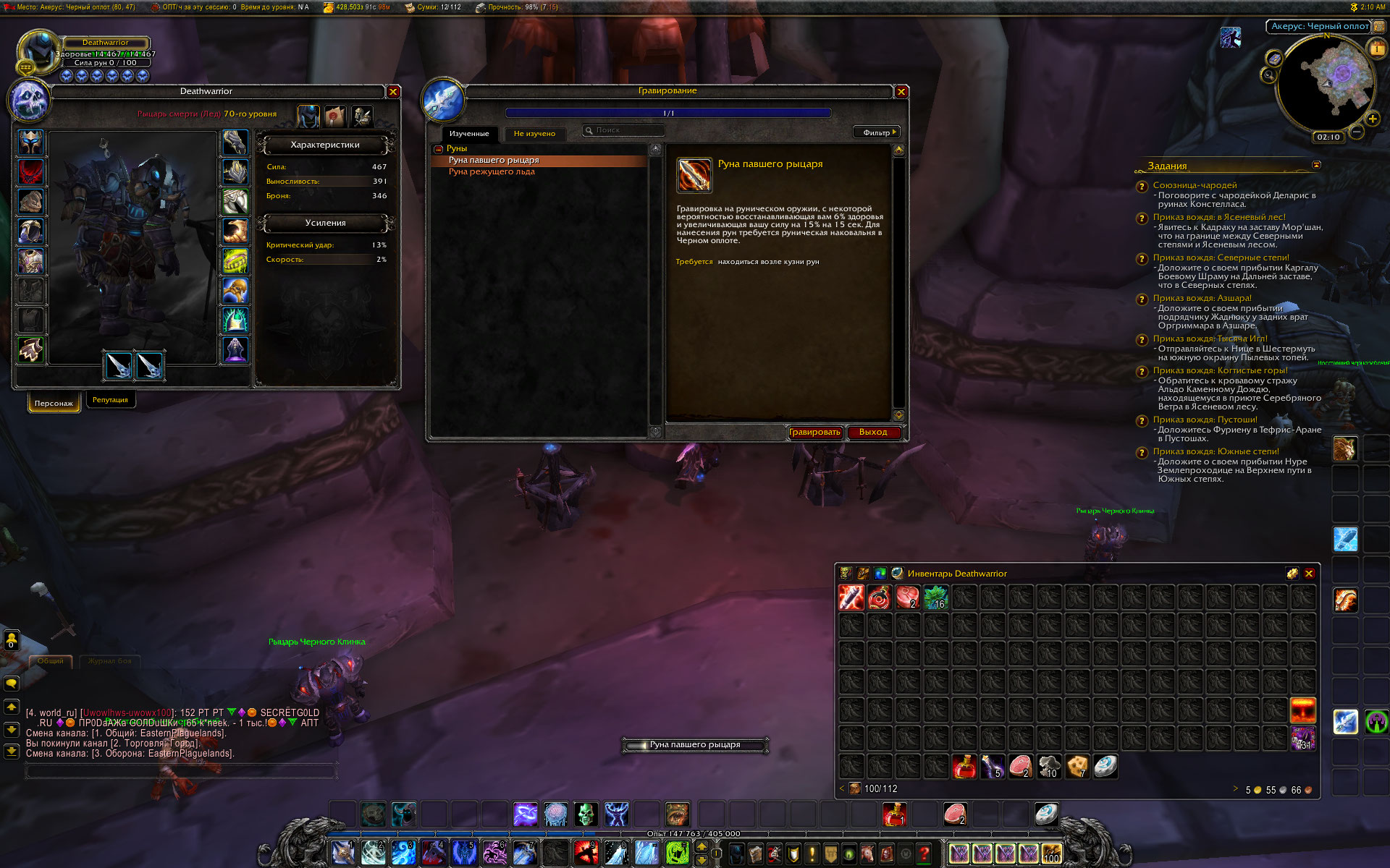 "Безнадежен.."(с) (Проверено на ДК 70 и 110 уровня, до и после использования врат смерти - гравирование в книге есть, нанесение и замена руны происходит успешно. Персонажи с Эпика х1, не переносились, в пользовании кроссервером не замечены) |