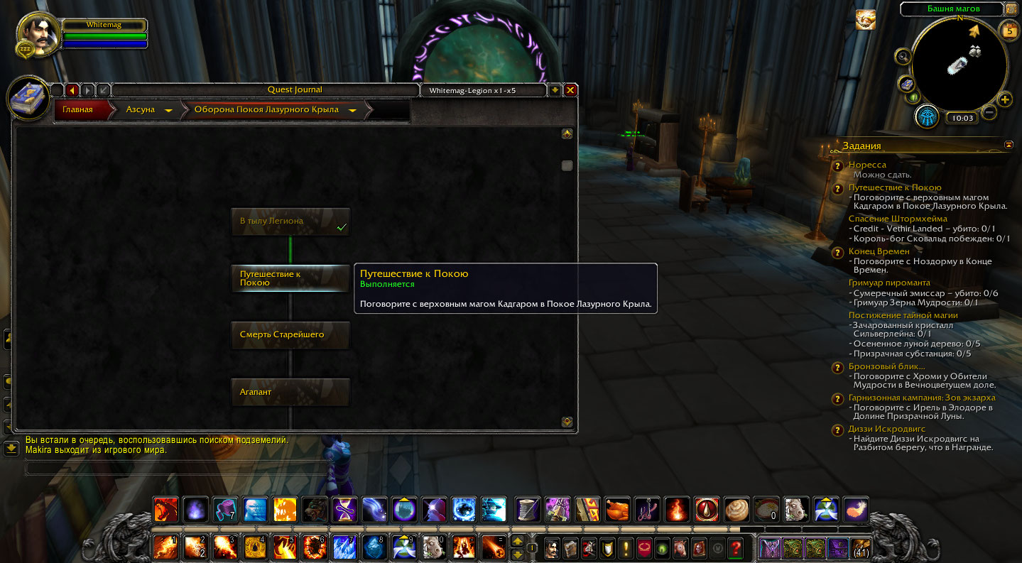 По Азсуне -Путешествие к покою -Кадгар так и не появился. Сделайте пожалуйста активным квест после Расколотого берега (можно с Рука Судьбы) и я продолжу или другой.