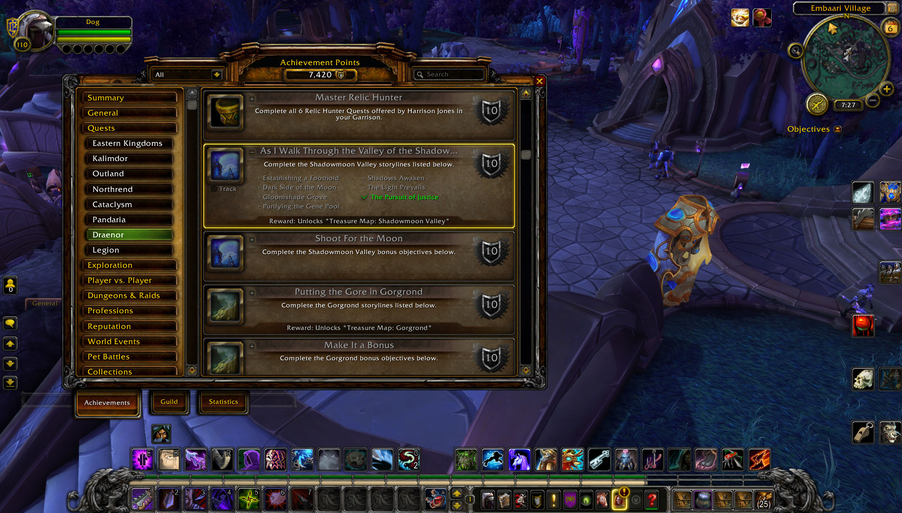 | Additional Information | I do think with my garrison being on tier 3 it makes it impossible for me to get the quest legit. I even used a macro with the quest id to see if I did do it but it came out "false" I checked my achievements and I did not complete the storyline for it either. I spoke to a gm and asked if Draenor flying achievement works and he stated it does. I do think this problem only exists with me having tier 3 Garrison. I have done Talador, Spires of Arak and Nagrand which all worked 100%. I'm doing the rest later on, it's just shadowmoonvalley that I'm having a problem with at this moment. It also doesn't show that I have this first part of the achievement done when I have done it. Below are some screenshots. Thank you. | ||||
