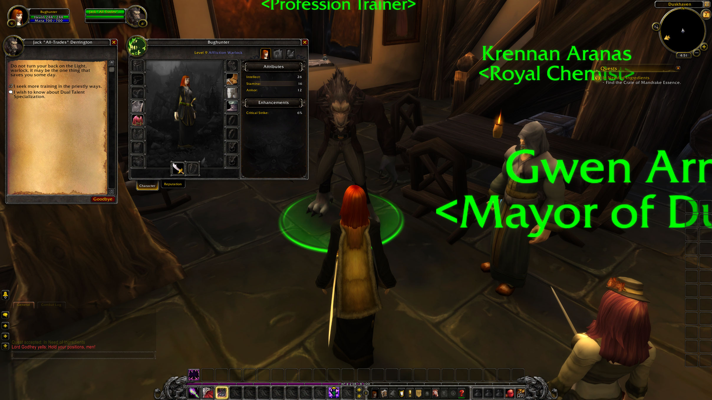 Steps To ReproduceGet to duskhaven, talk with Jack.