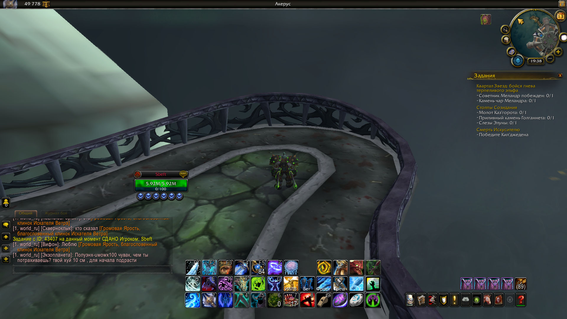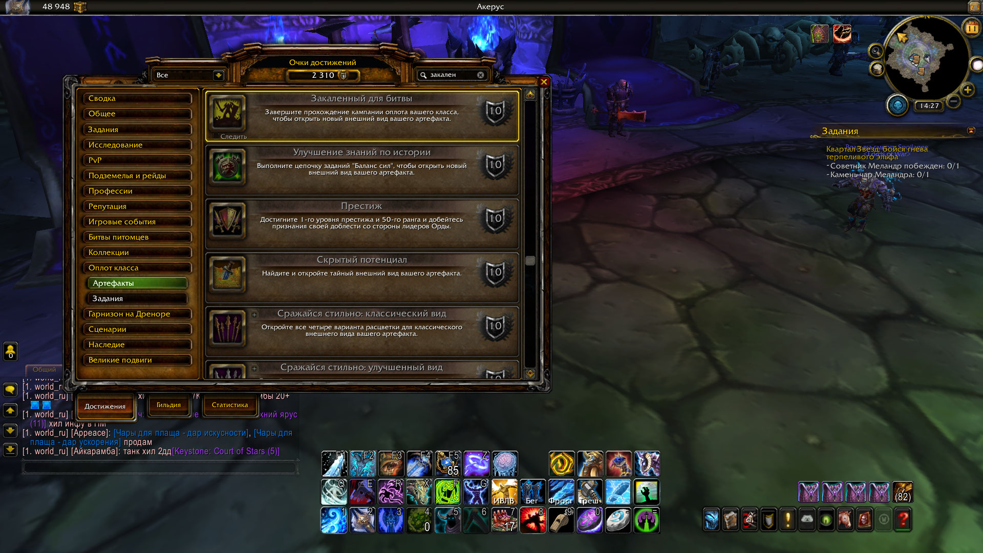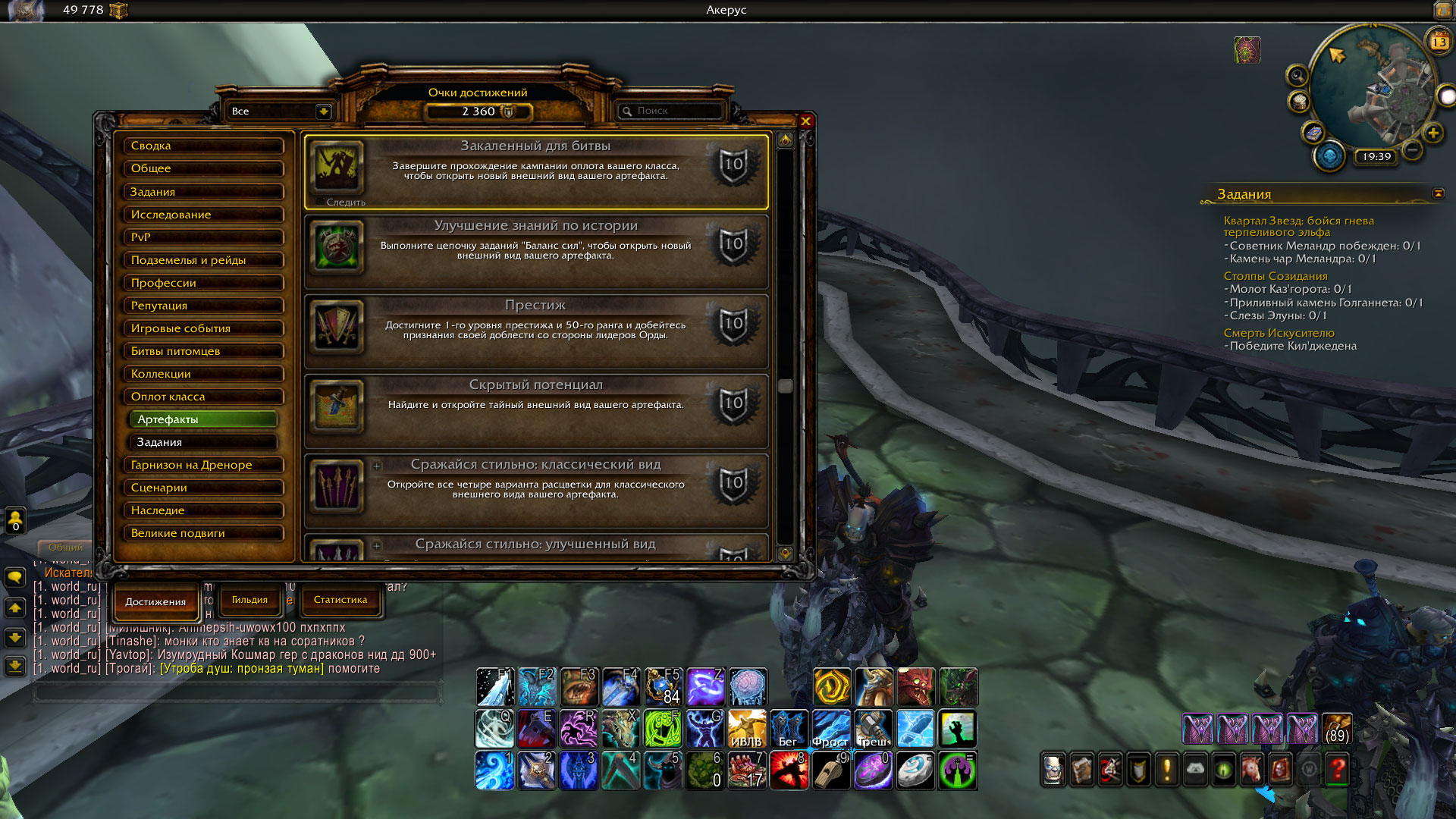 Скачайте аддон что бы мы нашли проблему. Отключите все адоны кроме этого на время. Он должен работать Давайте по порядку https://ru.wowhead.com/achievement=10746/ скрин что достижения нету. У вас открыт 3 релик в артефакте? Скрин с командой .q s 43407 Персонаж у вас перенесенный? |
