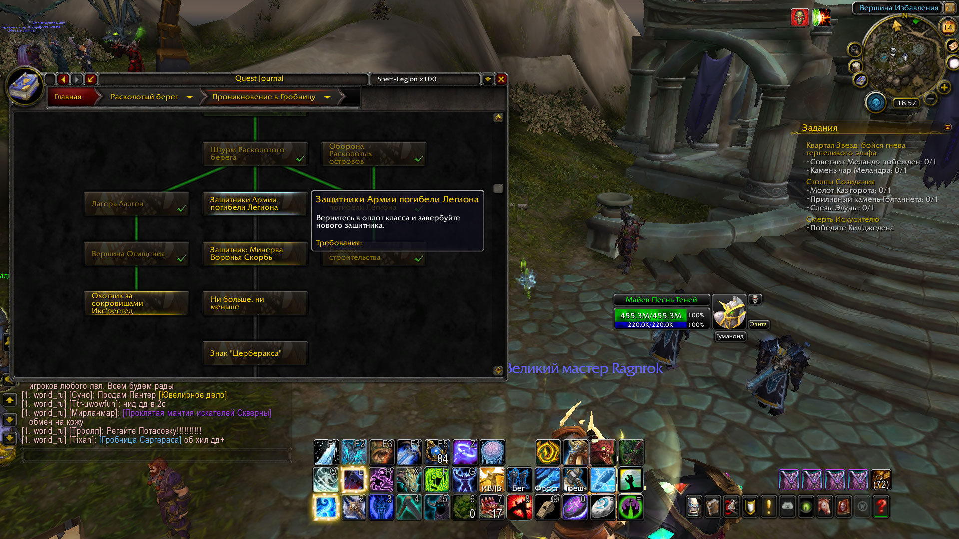 | Description | Legion x100. Рыцарь смерти Sbeft. После завершения основной цепочки оплота, данный квест не появился, в связи с чем невозможно продолжить цепочку на Расколотом берегу. Достижение "Закаленный для битвы" отсутствует. Показывает, что квест выполнен, что на самом деле не так. У всех НПС в оплоте квестов больше нет. | ||||