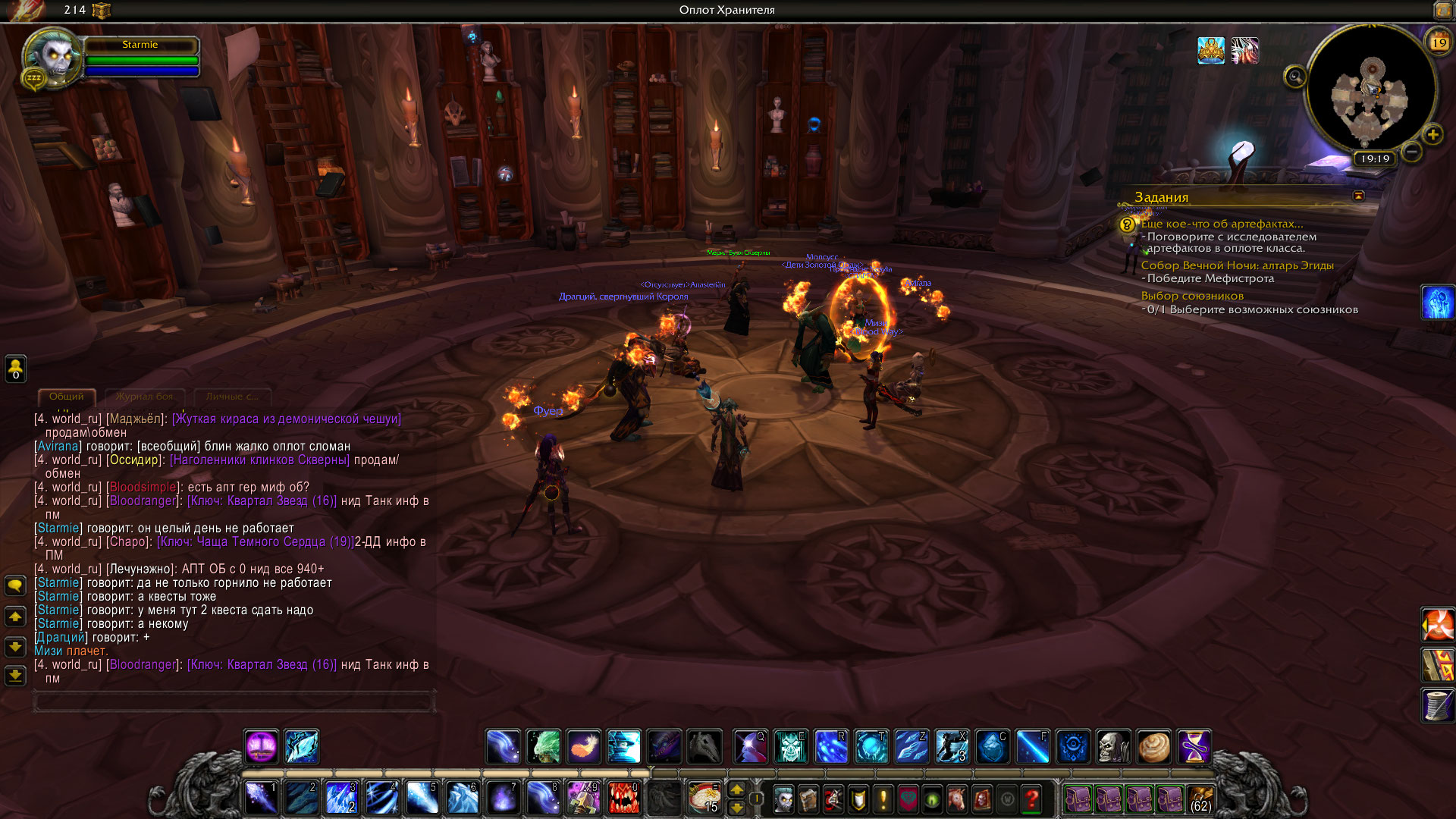 | Description | 1.Примерно в районе с 12-13 часов в Оплоте полностью отсутствует Горнило. 2.Нет никаких локальных Заданий в Оплоте Магов. На карте восклиц-ые знаки есть, но подходишь - нужного нпц нет. 3.Не сдаётся квест "ещё кое-что об артефактах..." потому-что нужный Нпц отсутствует в Оплоте. 4.В самом начале Оплота нет телепорта в Даларан. 5.Данный баг у всех Магов, все стояли и спрашивали где Горнило. Фото ниже. | ||||