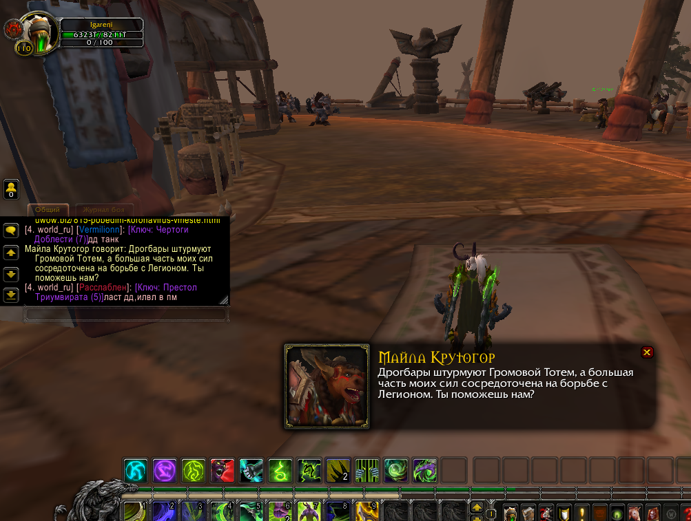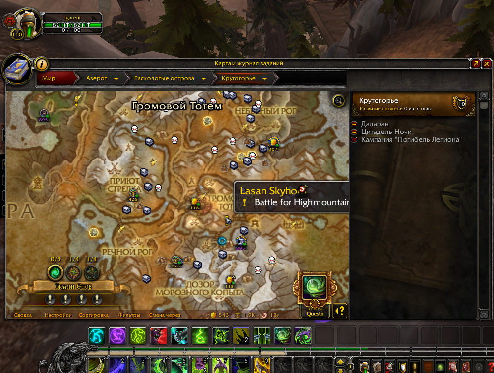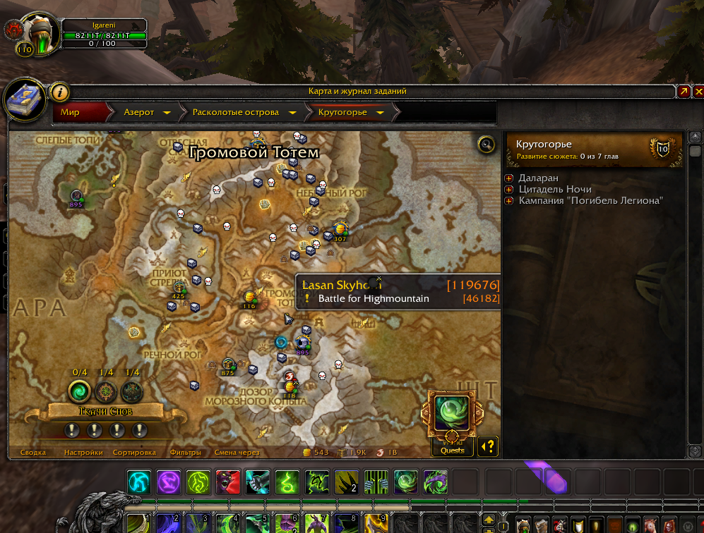 | Description | Сломалась сюжетка после того как сервер неожиданно отключился (возможно) legion x100 персонаж Igareni демон хантер танк. Сюжетку прошел на 0 из 7 глав. Еще в громовом тотему у меня не стоит Майло Крутогорье. + У меня по кд вылазит задание когда я подхожу к громовому тотетуму, ,,Дрогбары штурмуют Громовой тотем...,, И квест ,битва за крутогорье тоже забагался, нет нпс(Ласан) у которого брать квест. Помогите, остался последнее достижение(горы по колено) что бы летать на расколотых(( | ||||