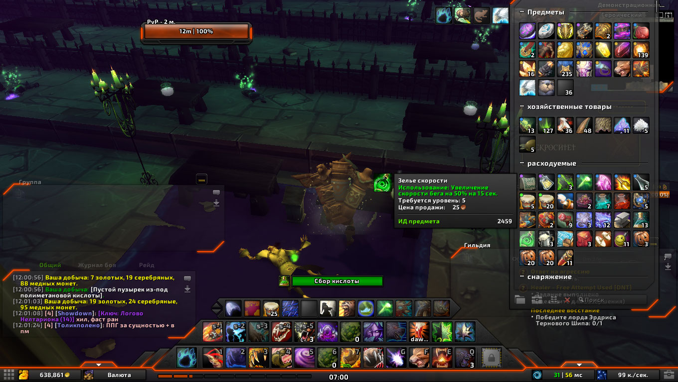 к тому же,в этом облике нельзя ни сесть на маунта,ни даже воспользоваться конем паладина.хотя на https://ru.wowhead.com/ люди советуют использовать всяких многоместных маунтов Еще есть одна фишка с этим бафом, если у вас есть маунт-превращение ( Фиал песков или Сердце крыла ночи). Выпиваем кислоту и превращаемся в одного из этих маунтов. В результате у вас останется модель профессора, но при этом вы будете маунтов и сможете спокойно бегать и летать! Особенно впечатлительные игроки могут посчитать вас читером :) (С) взято отсюда https://ru.wowhead.com/achievement=6715 |